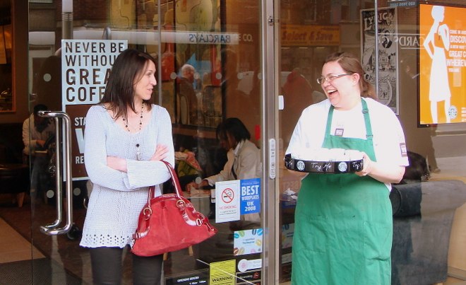 Sample to customers waiting in line. If there isn’t a line, sample to seated customers. If there aren’t customers inside, sample to potential customers passing by outside your store.